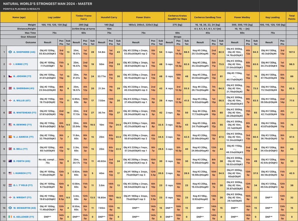 Classificació del Natural World’s Strongest Man and Woman 2024 de Galway