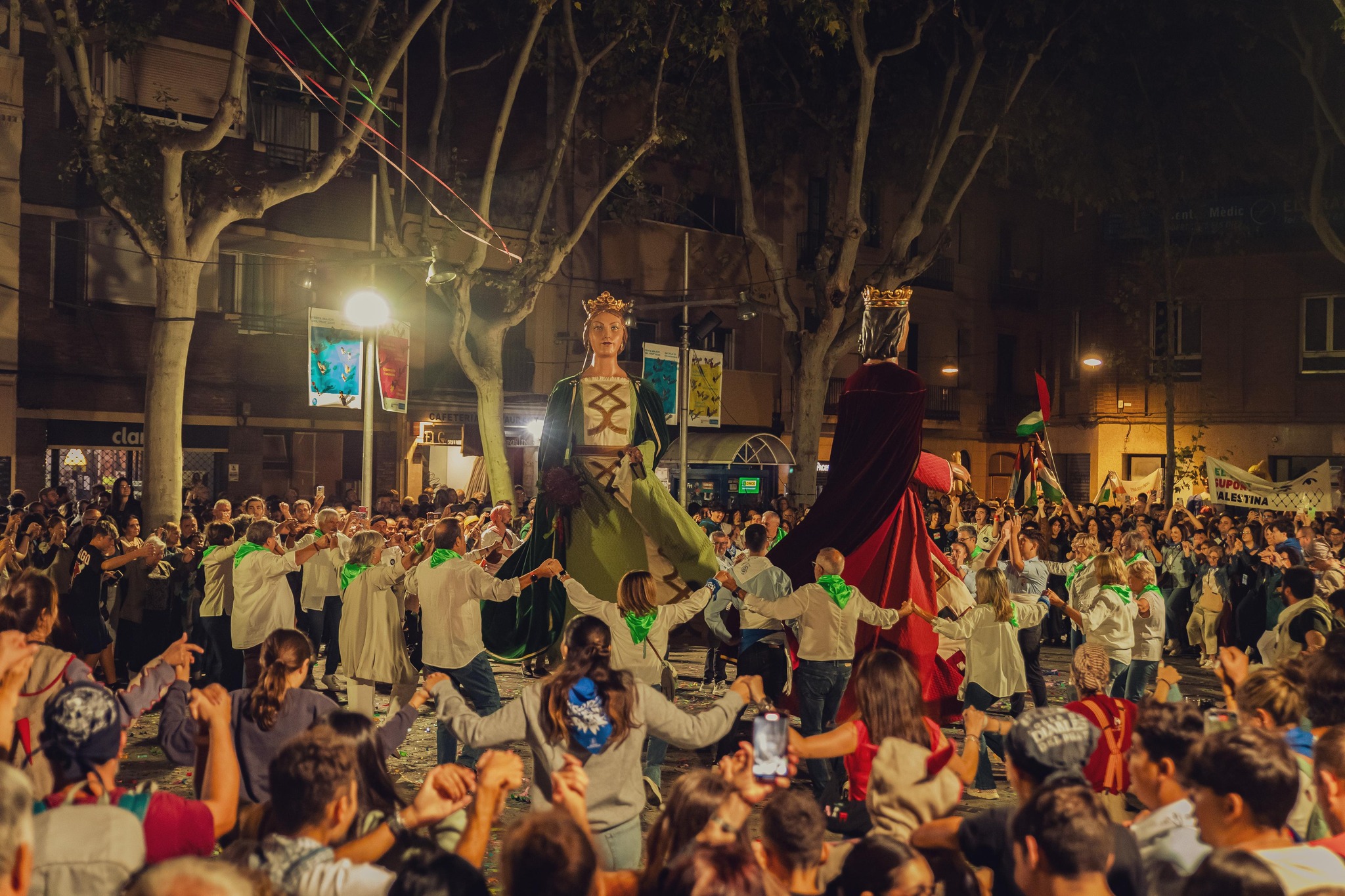 Gegants i gegantons, danses tradicionals, castellers, les figures pratenques de La Mulassa, el Pollo i la Papota i el foc dels diables van fer vibrar la plaça per deixar el testimoni a l’escriptora Rosa Ribas, encarregada del pregó. A través de petites històries, sola, però amb la seva excel·lent veu, Ribas va viatjar pel Prat de sempre, el de la seva gent i les seves vides quotidianes. L’escriptora local també va tenir el seu moment reivindicatiu amb la defensa del sector i dels professionals de la sanitat públic i la petició del fi imminent del genocidi a Gaza. Ribas va qualificar la ciutat com a bategant i dinàmica i va defensar la diversitat cultural: “Gairebé tots els que estem aquí venim d’una història de migració”.